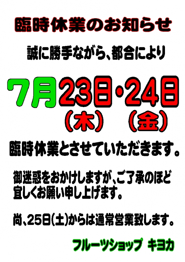 - 臨時休業のお知らせ
